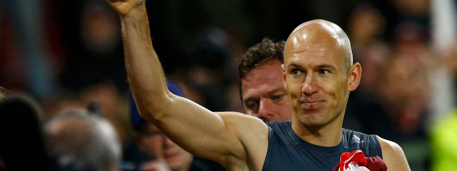 Arjen robben steht an der strafraumgrenze im tollhaus old trafford, lauert auf.